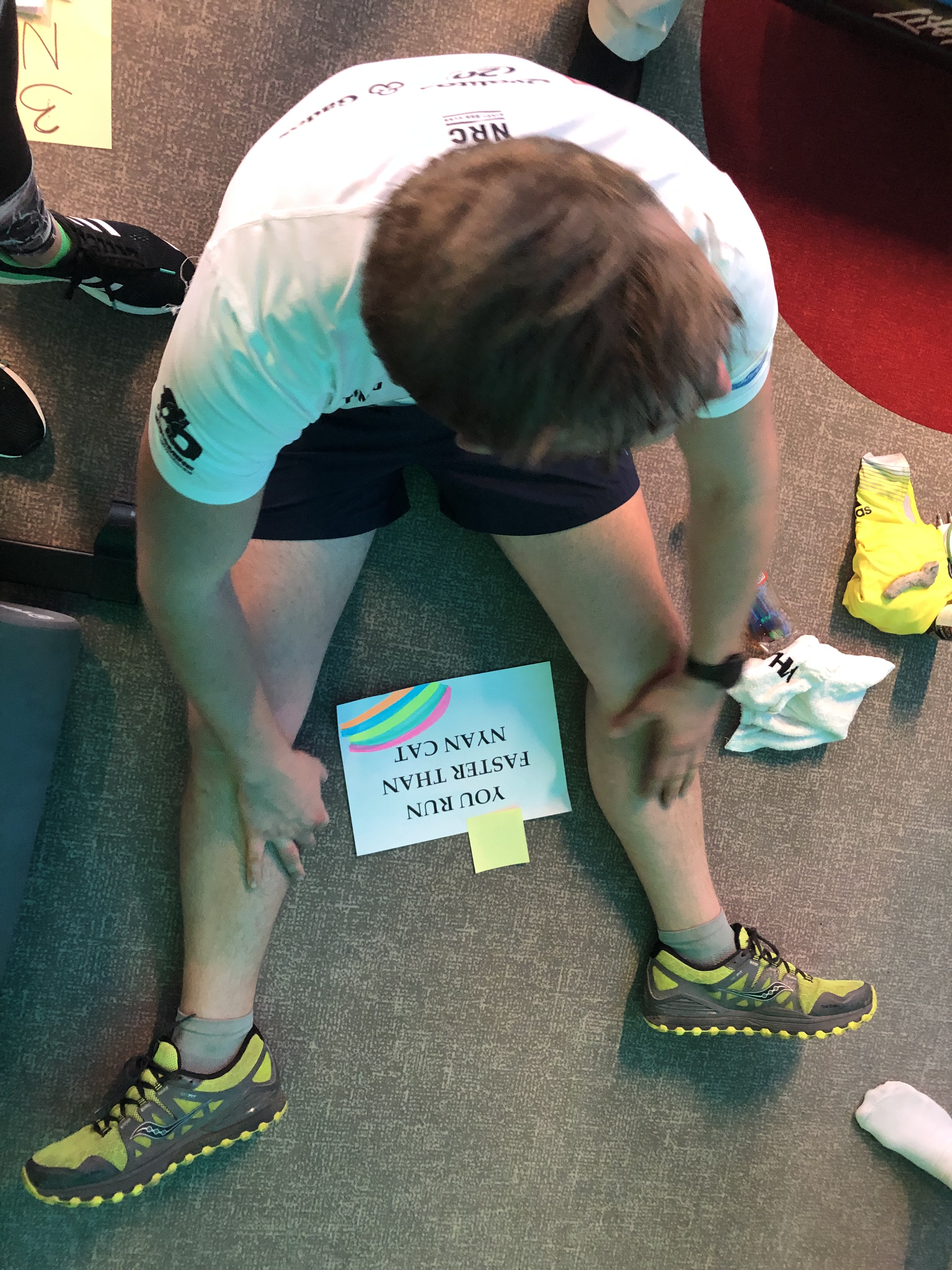 Timo väärib  tõeliselt tahtejõu- ja kestvuse eritiitlit. Kui oli joostud ligi 40 kilomeetrit, siis tuli ta suust ja otse südamest – sellest tuleb teha õppevideo , et ilma korraliku ettevalmistuseta maratoni EI JOOSTA! Ega see mingi Mesikäpa jooks olegi. Kui esimesed 20 kilomeetrit tunduvad veel tehtavad, siis edasi on juba tunne, et oleks nagu jooksnud ja omakorda 30ndast edasi oli ikka raske-raske. Valus oli vaadata krampides ja lindi kohal käte najal teda rippumas. Ka siis kui oli jäänud veel viimased 300 m, sundisid krambid jooksulinti seisatama ja jalgu venitama. Ai kui valus seda vaadata oli. Selleks hetkeks oli Timo valmis ka roomama need viimased meetrid. See oli kestvuse ja tahtejõu erimedal. 5.25.16.